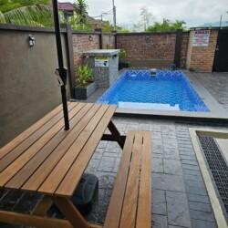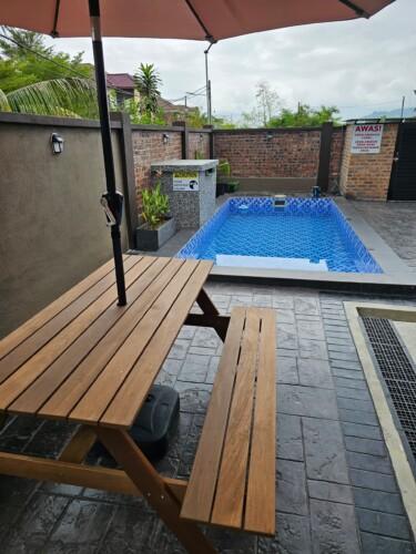 1½storey bungalow with strategic location for foods & to move around. About 2km away from the famous Bt Burok beach & Draw Bridge. 4rooms/area with acond fits 12pax comfortably. Private pool, bbq pit & dining table at the verandah make the stay more fun getting together with family & friends.