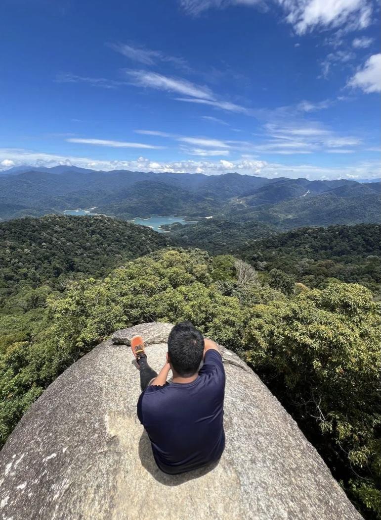 The summit itself is marked by a large boulder, from which you can enjoy a breathtaking panoramic view of the surrounding landscape, including the Sungai Selangor Dam and the majestic Titiwangsa Mountain Range.